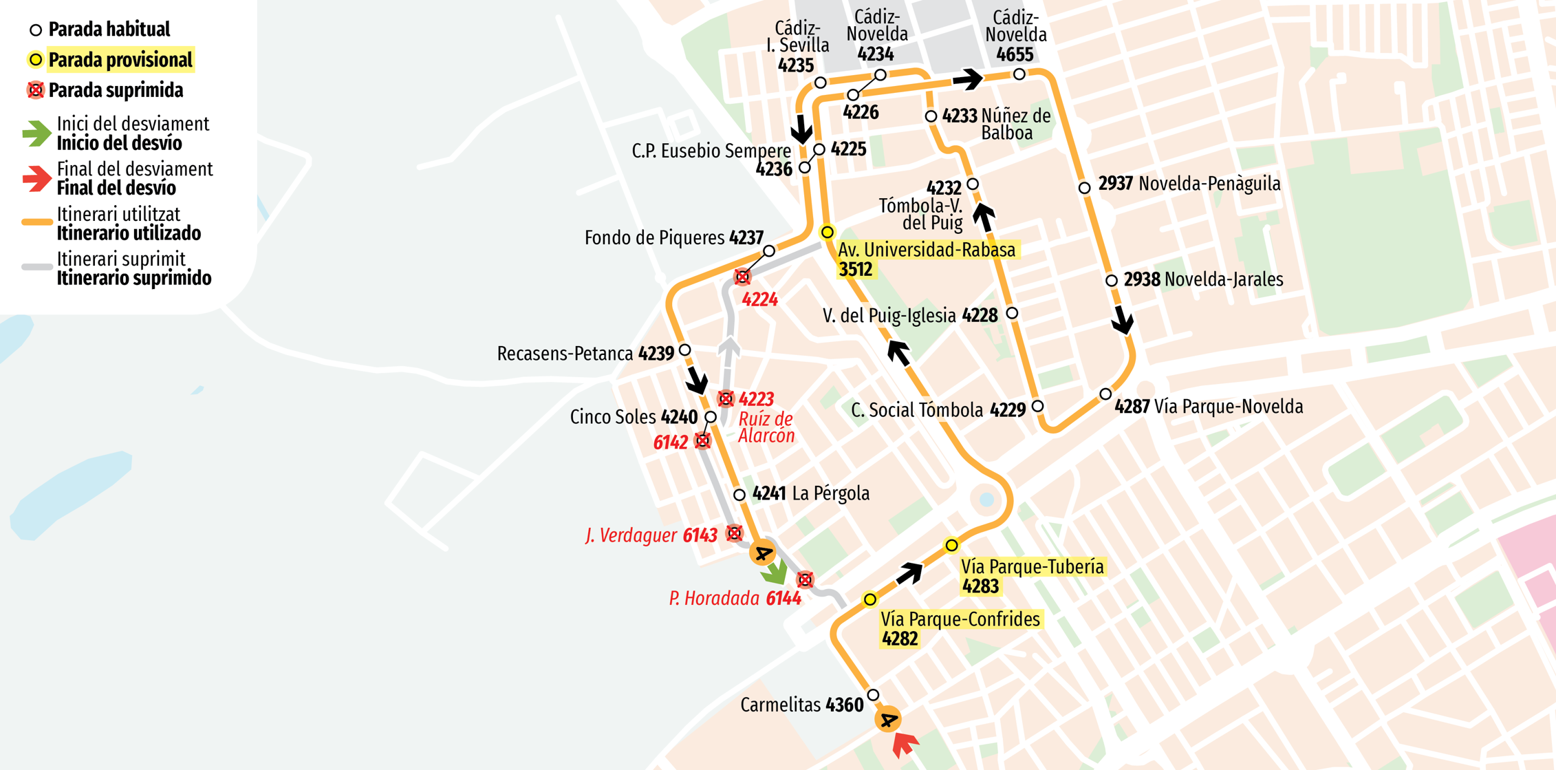 26/05/25 Modificación de Recorrido por "Obras en Carretera Alcoraya"