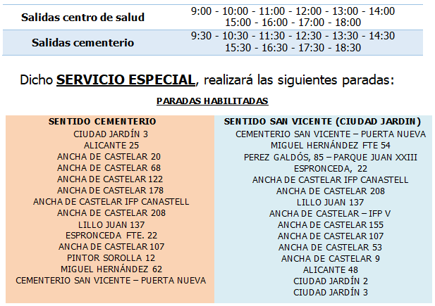Servei Especial per "Tots els Sants Sant Vicent"