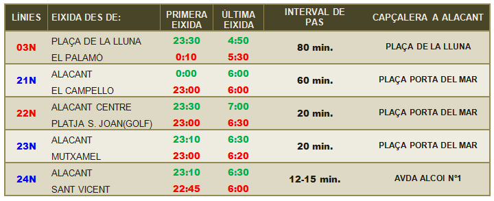 Es comunica als Srs. Usuaris de les línies 03N, 21N, 22N, 23N i 24N que, amb motiu de la celebració de les FESTES DE FOGUERES 2017, les nits del 19 al 24 de Juny, les línies prestaran el següent servei: