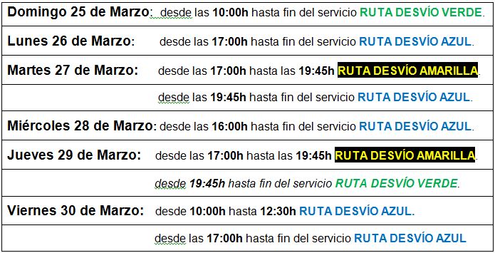 Desvíos Líneas Semana Santa