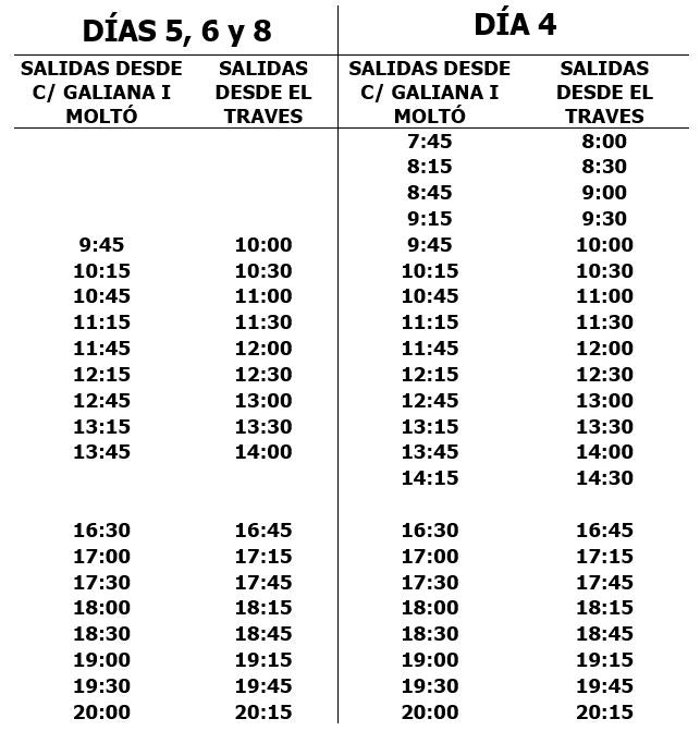 Se comunica a los Sres. Usuarios de la línea U-1 que, con motivo de la Feria de Navidad, los días 3, 4, 5, 6, 7 y 8 de diciembre de 2021 se prestarán los siguientes servicios: