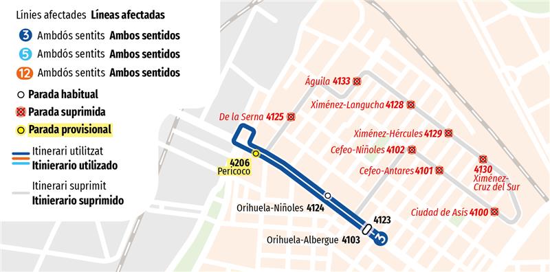 Línea 3Traslada temporalmente su cabecera a la parada 4206, PERICOCO.