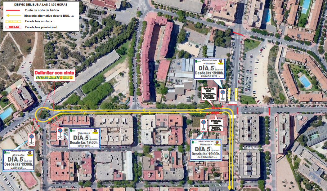 que, con motivo de CONCIERTO SOCIEDAD ESPOÑOLA DE RADIO DIFUSIÓN, desde las 21:00 y hasta fin de servicio del día 5 de julio, se modificará de forma temporal el recorrido de las líneas en San Vicente del Raspeig: