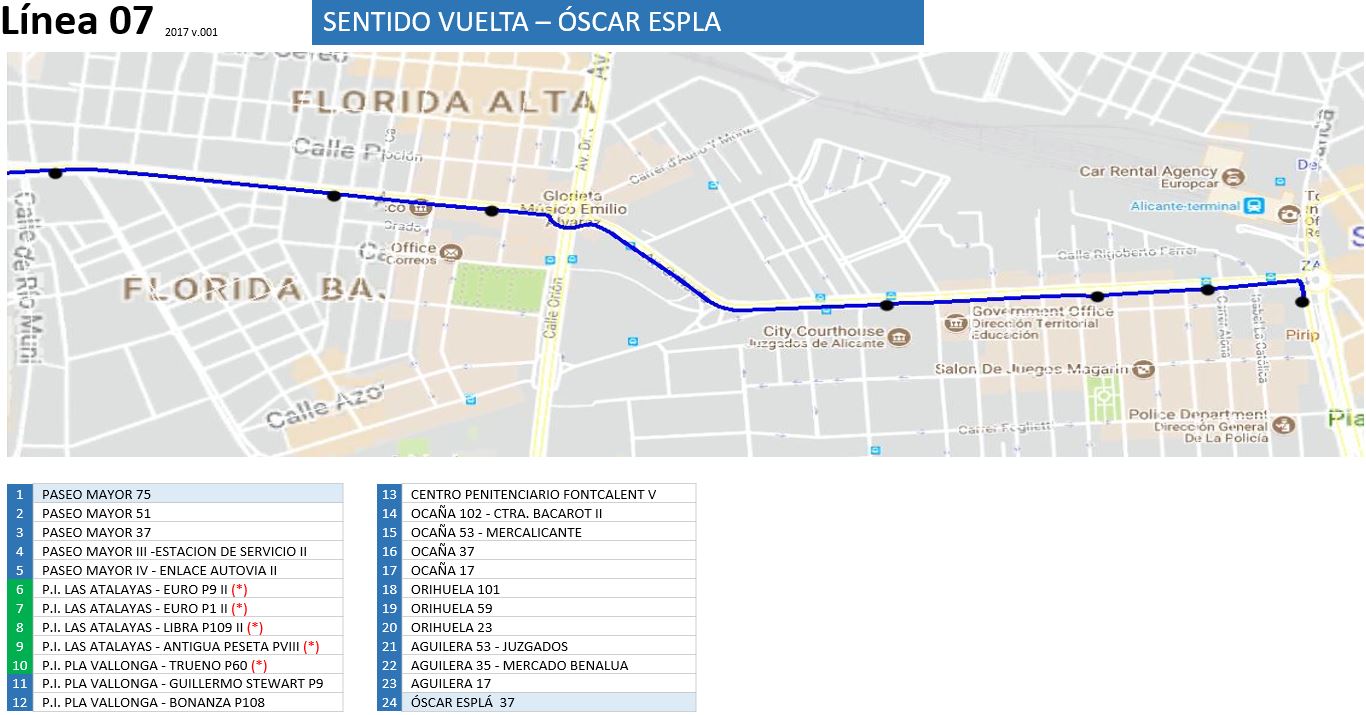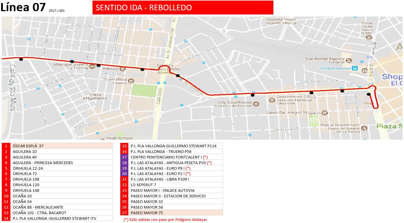 07 Sentido Rebolledo Paradas 07 Sentido Oscar Espla Paradas