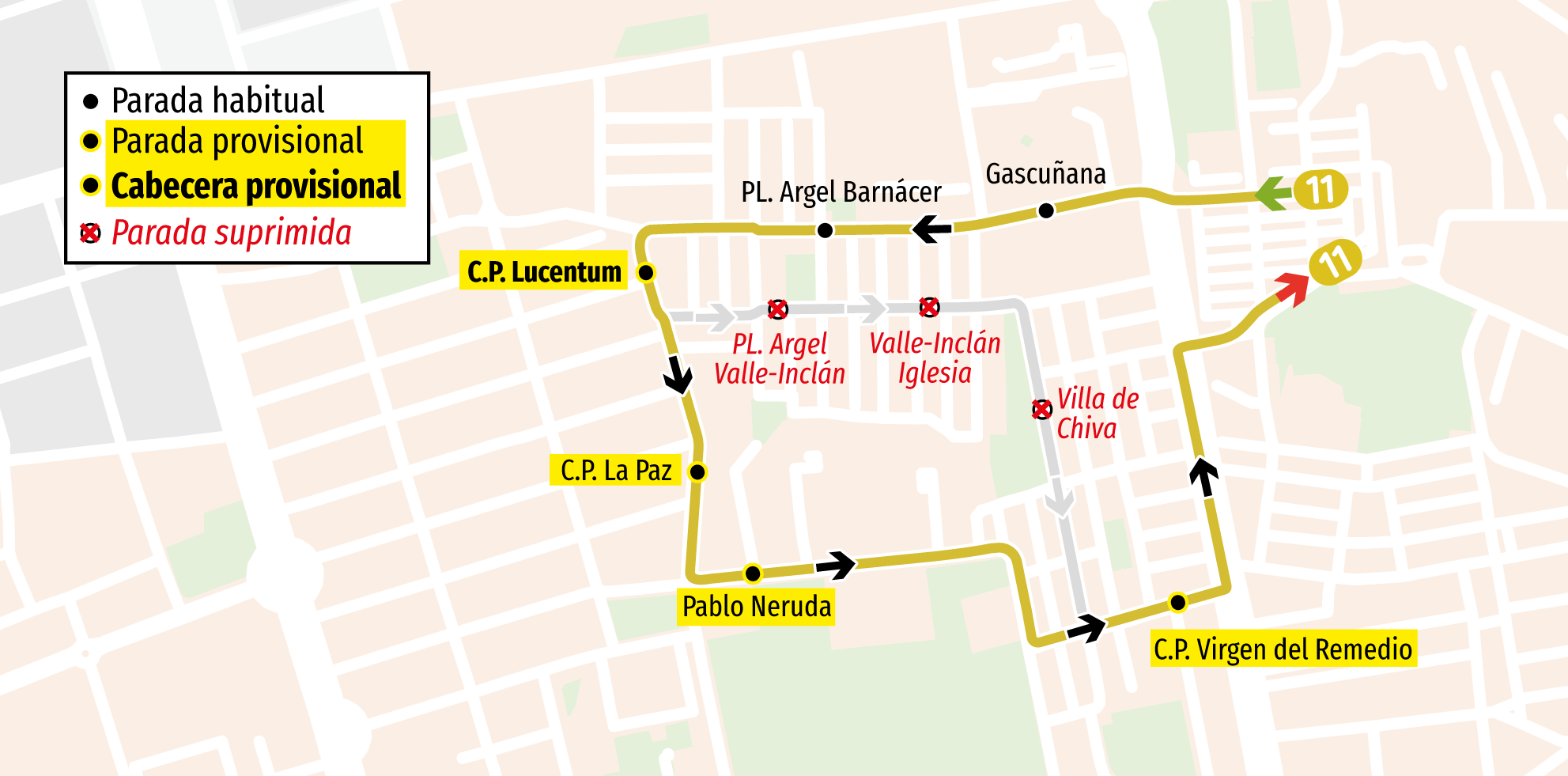 Modificación de Recorrido por "Avance en Obras Carretera de la Alcoraya"