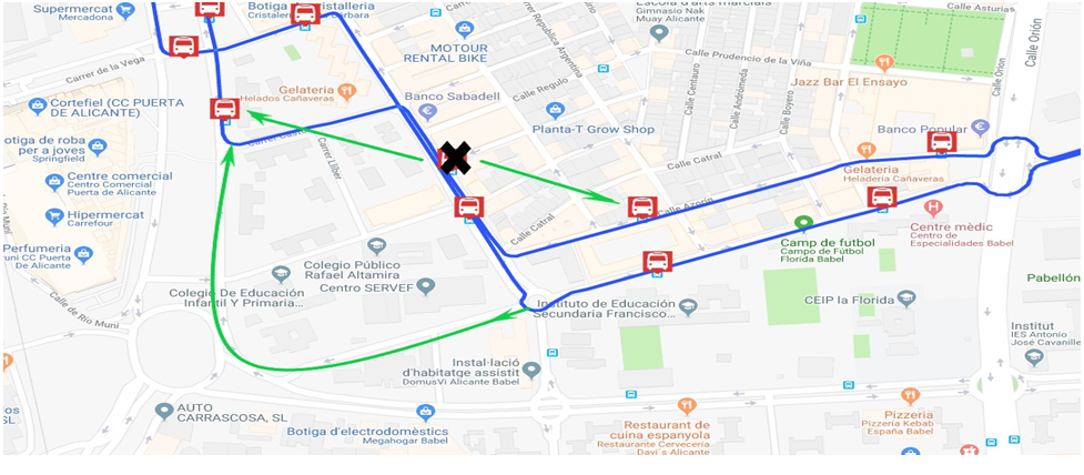 Modificación de Recorrido por "Avance en Obras Carretera de La Alcoraya"
