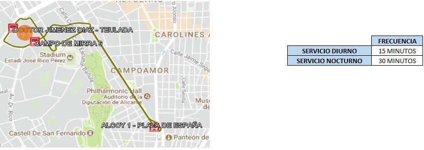 Modificación de Recorrido por "Avance en Obras Carretera de La Alcoraya"